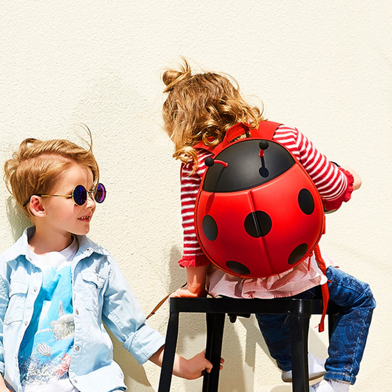 Een Lieveheersbeestje Rugzak met flexibele voelsprieten.